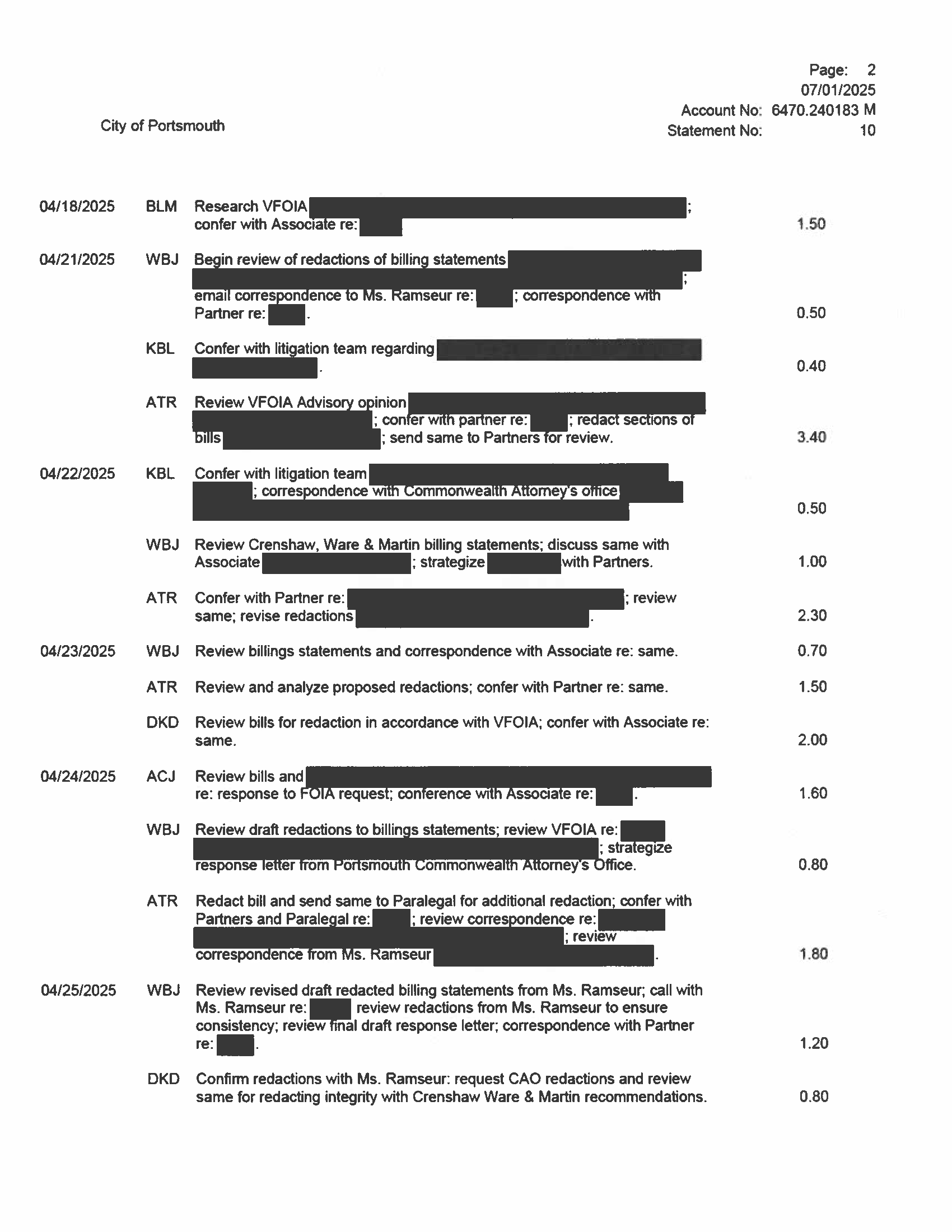 Back in April, I reported on the legal bills amassed by Portsmouth Commonwealth’s Attorney Stephanie Morales (D-Portsmouth) in my FOIA litigation against her, bills invoiced by private law firm Crenshaw, Ware & Martin, P.L.C. From that article: